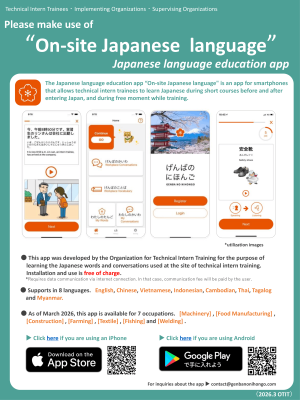 Educational materials for Japanese language “On-site Japanese language” provided by OTIT (Organization for Technical Intern Training)