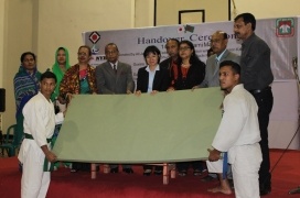 141 Judo tatami mats donated by All Japan Judo Federation in cooperation with Nippon Yusen Kabushiki Kaisha and Shunan City in Yamaguchi Prefecture to Bangladesh Judo Federation have arrived in Dhaka. The handover ceremony for the mats was held at Sultana Kamal Mahila Complex, Dhanmondi, Dhaka at 11:30 am on 26 December 2016.